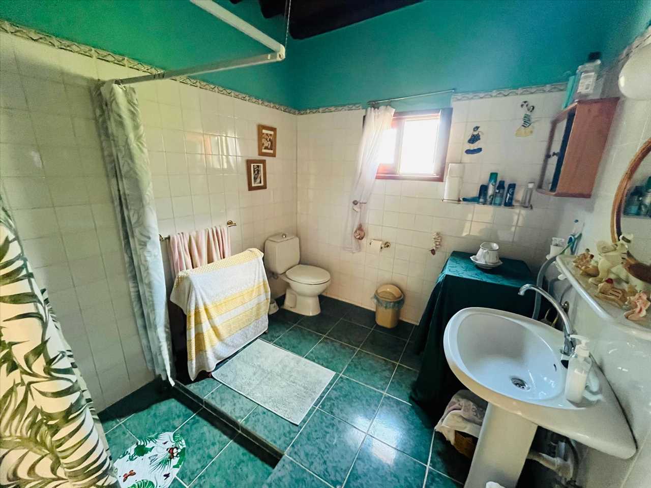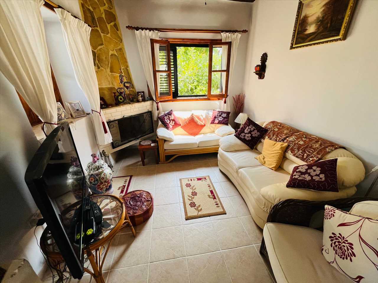 Single aspect with ceramic floors, beamed ceilings, open fireplace, ceiling fan and access to the roof terrace.