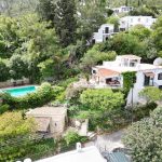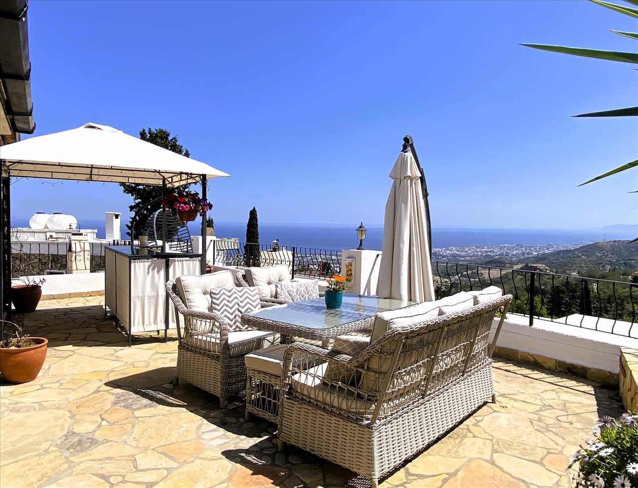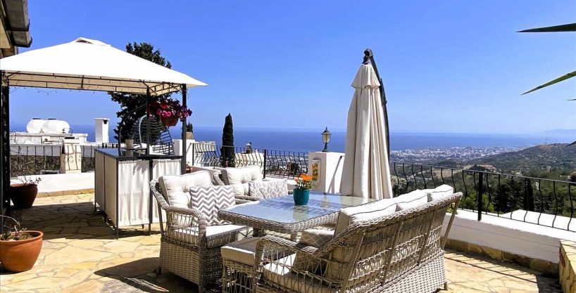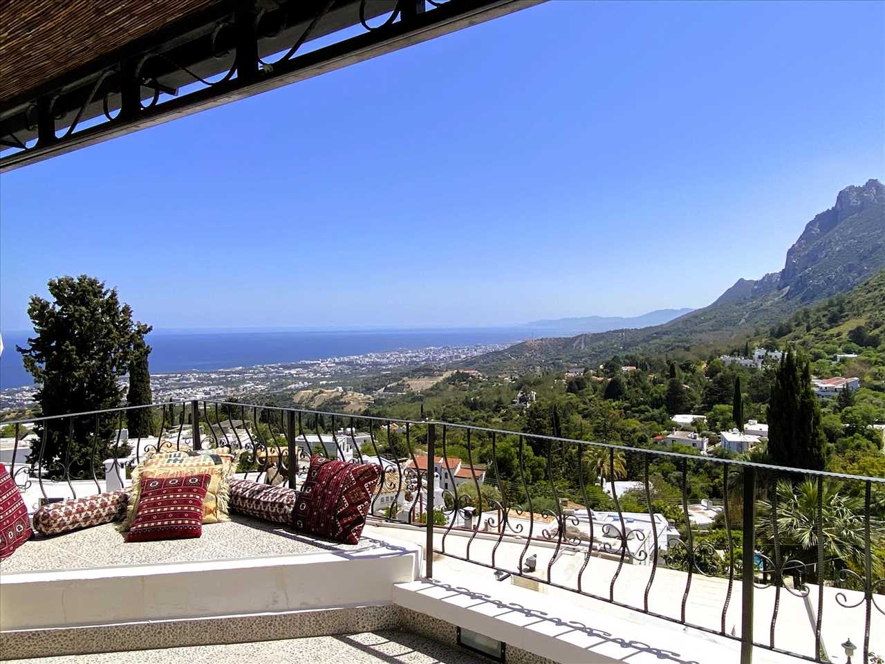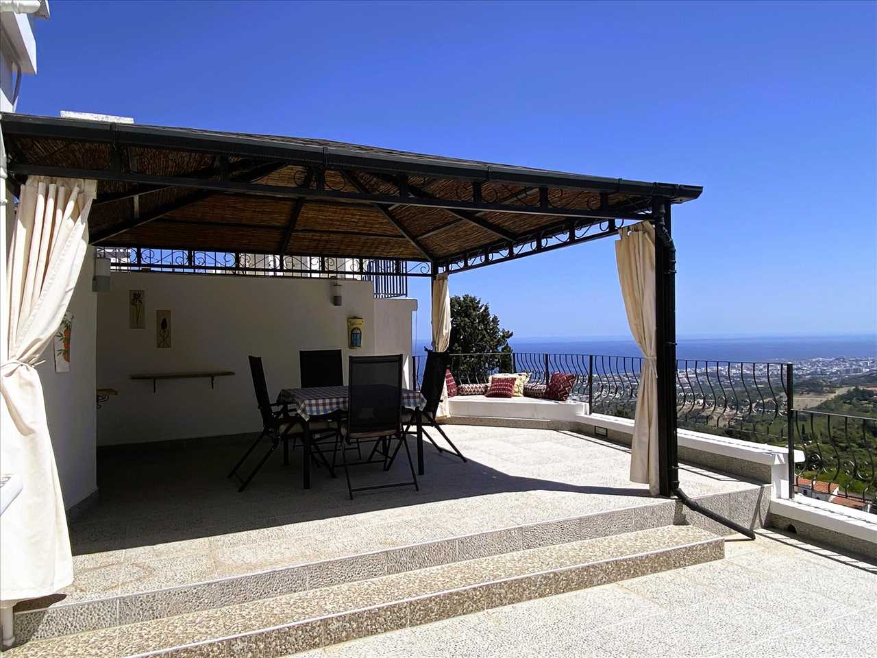 The large rear terrace offers a pergola covered dining area, open terraces with ample space for seating, access to the utility room and spectacular views to the mountains and coast.