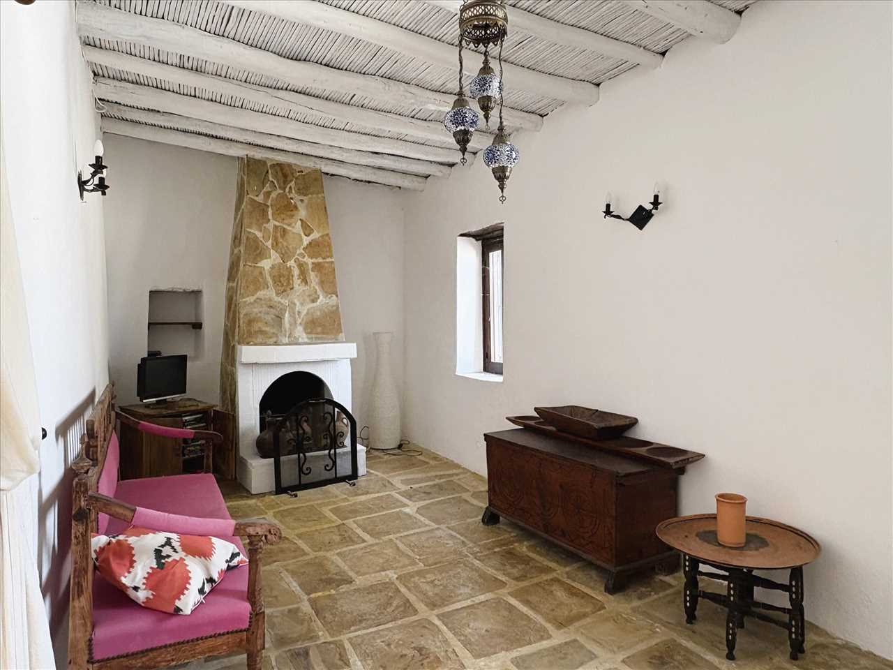 Dual aspect, stone floor, beamed ceiling, staircase to roof terrace and second staircase down to bedrooms and shower room.