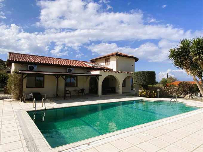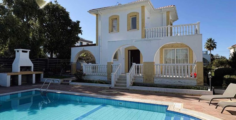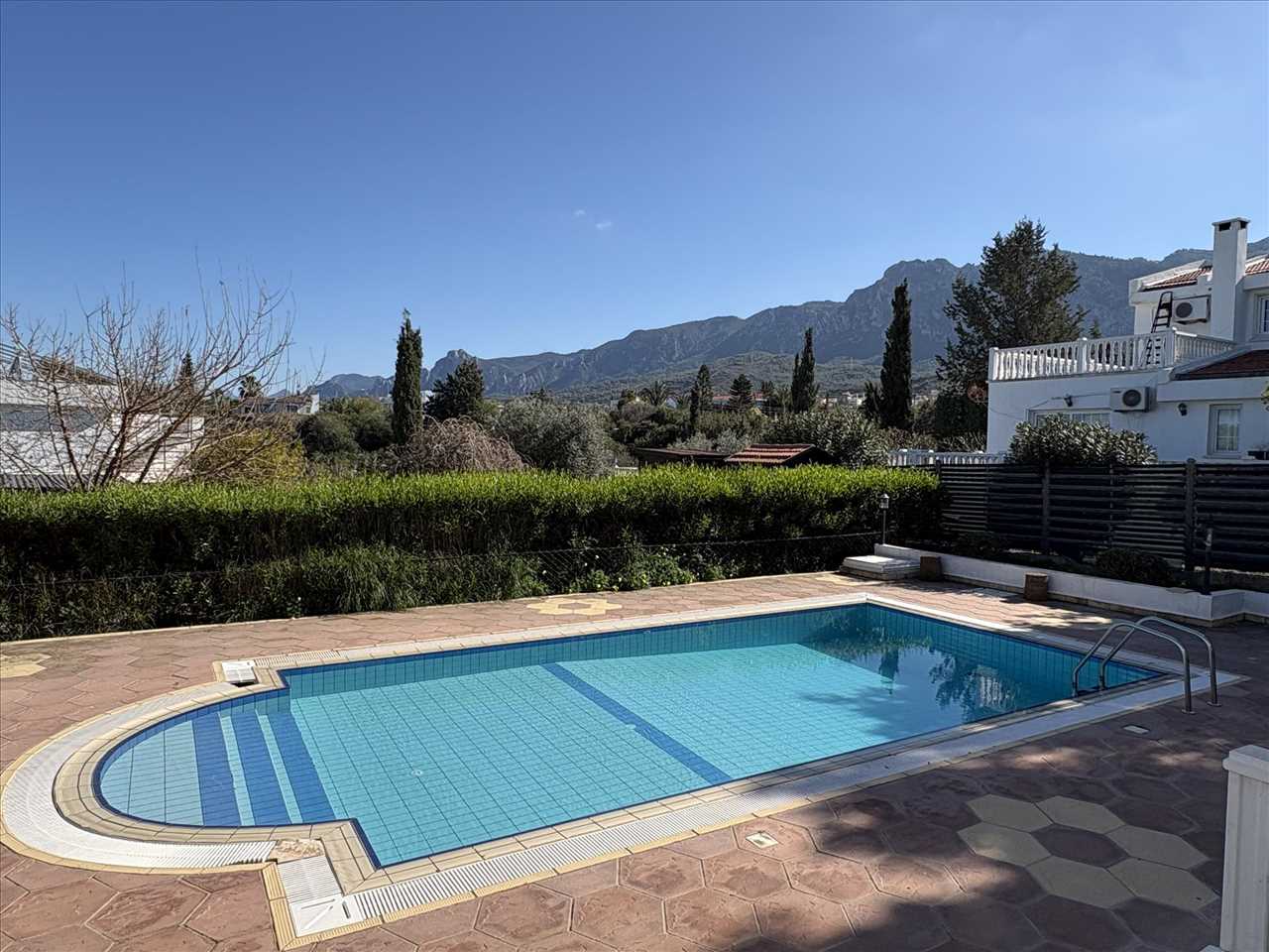 This charming villa set in mature landscaped gardens with private pool is located in a popular area of Alsancak within easy walking distance of shops, restaurants and beaches. The property benefits from a bright and airy open plan living space, 3 bedrooms, 2 bathrooms, air conditioning and lovely terraces overlooking the garden and pool. There is ample space for off road parking including a covered parking area and the property is furnished and ready to move in to. Price includes pool and garden maintenance and viewing is recommended.